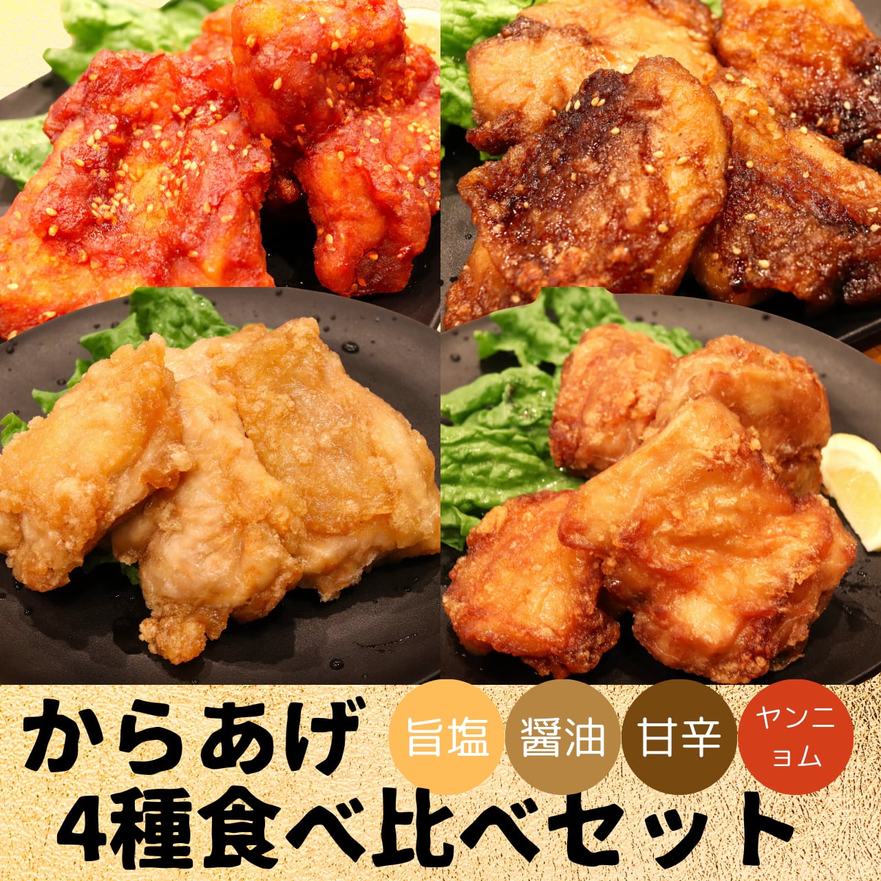 【名称】 からあげ4種食べ比べセット【塩・醤油・甘辛ダレ・ヤンニョム】